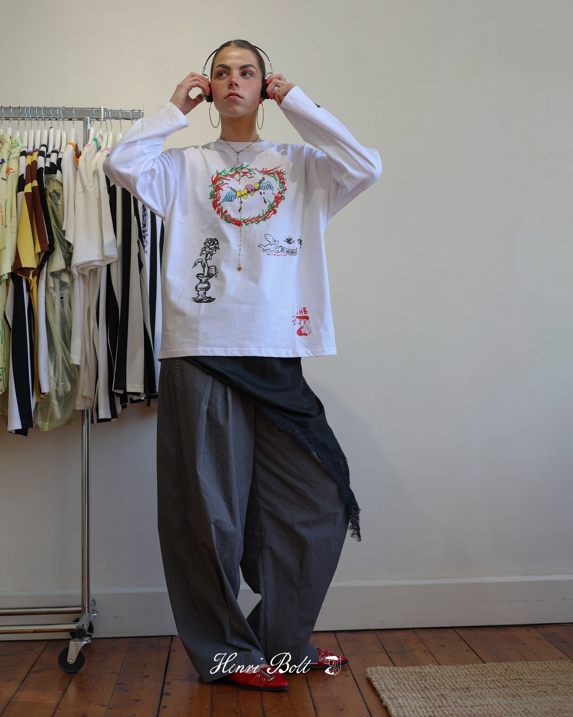A white long sleeve is, in our opinion, an item everyone should have in their wardrobe. It always works. With this fit and the artworks, it turns a basic must-have into a unique piece that is still easy to combine with anything.